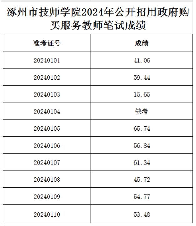 附:涿州市技師學院公開招用政府購買服務教師筆試成績
